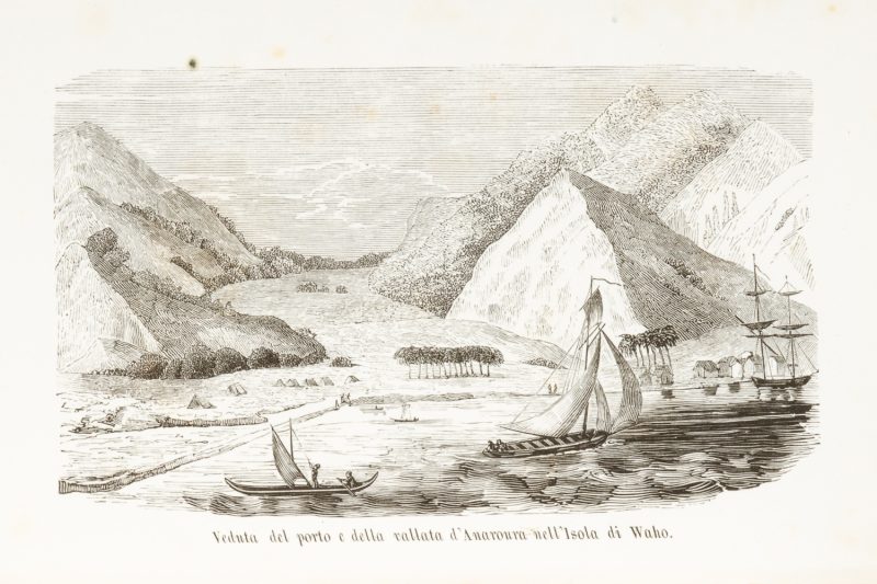 The first Italian edition, expanded from the first French edition, of ‘a rare and important work by the captain of a French trading vessel, particularly important for its detailed examination of California during the last phase of its Spanish period.’ (Forbes). This important edition includes an essay by Dr. Paolo Emilio Botta, the ship’s surgeon and an amateur naturalist, Observations on the inhabitants of the Sandwich Islands and California. Botta’s Hawaiian observations are followed by an Italian-Hawaiian vocabulary and a list of Hawaiian numerals.