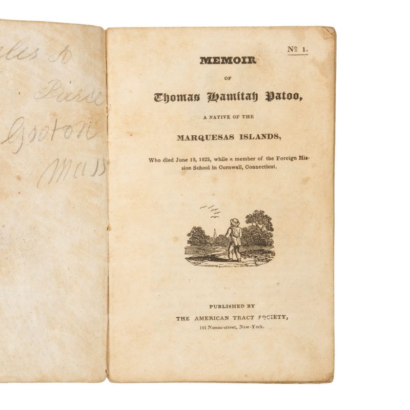 This chapbook tells the story of a Marquesan who stowed away on a ship to the United States and joined the Foreign Mission School in Cornwall, Connecticut.