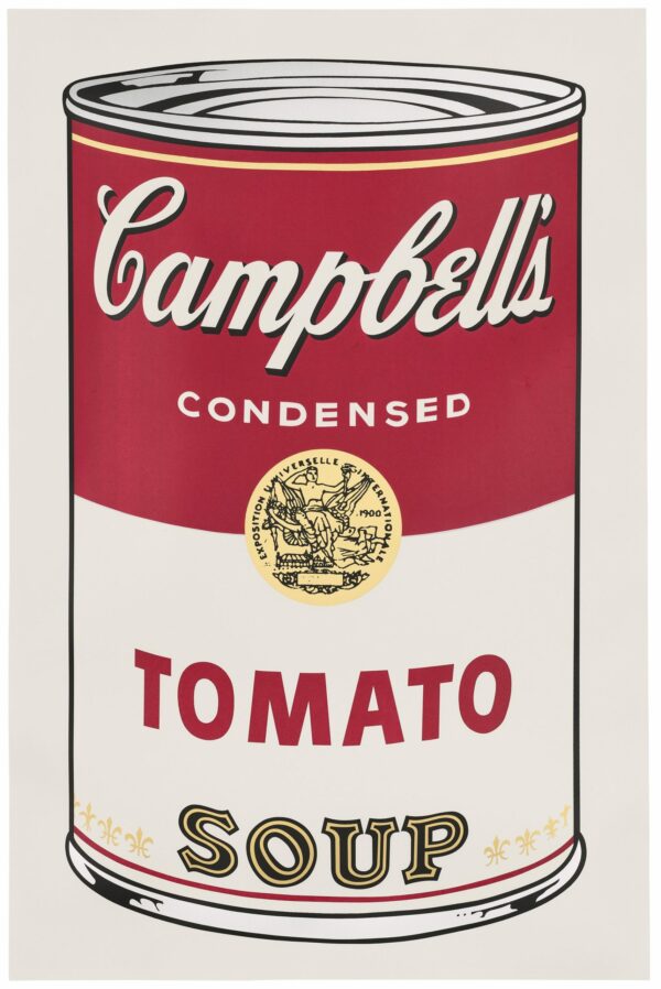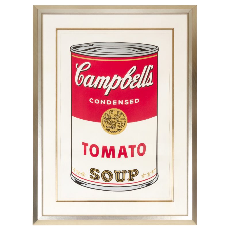 Tomato Soup was one of the first soups manufactured by Campbell’s, and has always been its most popular, a household staple in nearly every home in America. This ubiquitous soup – more than the others – has come to symbolise Pop Art movement, as early as May 1969 Warhol was pictured drowning in a gigantic can of Campbell’s Tomato Soup on the cover of Esquire magazine.